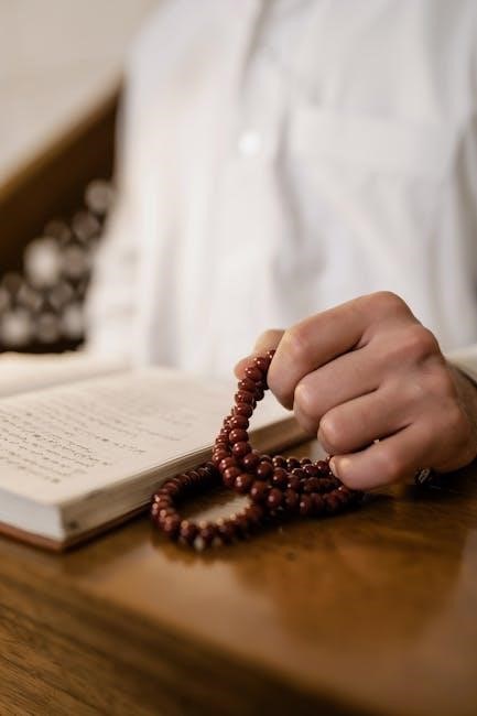 Deep breathing exercises are a cornerstone of 5-minute guided meditation scripts, designed to calm the mind and relax the body. The script typically guides participants to inhale deeply through the nose for a count of four, hold the breath for a moment, and exhale slowly through the mouth for a count of seven or eight. This 4-7-8 technique promotes oxygen flow and reduces stress. The focus is on the sensation of the breath moving in and out of the body, encouraging mindfulness and release of tension. By emphasizing slow, intentional breathing, the practice helps quiet the mind and transition into a meditative state, preparing the individual for further relaxation and focus. This section is essential for grounding and centering energy.